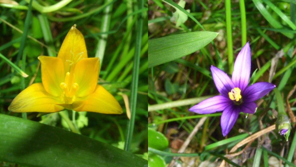 Zwei Scheinkrokusse: Romulea crocea (links) und Romulea linaresii (rechts).