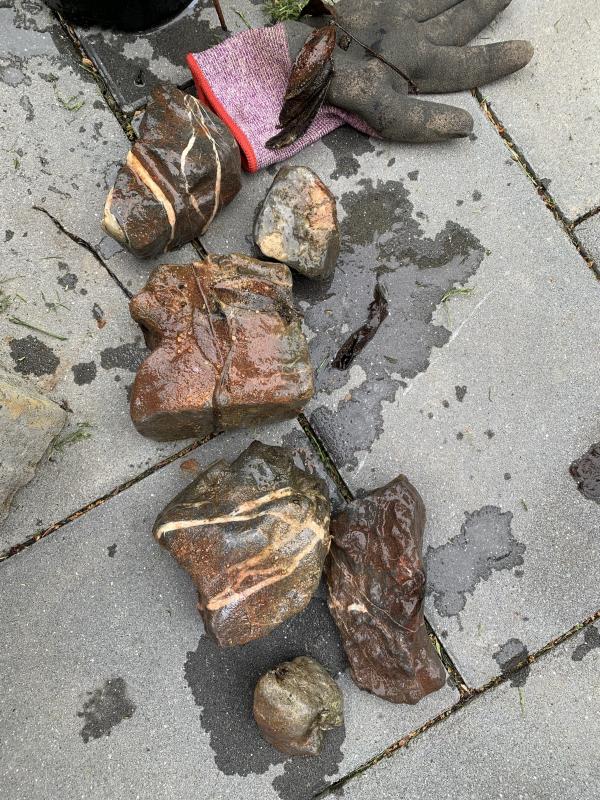 Auf den Steinen sowie auf der Innenwand der Wanne