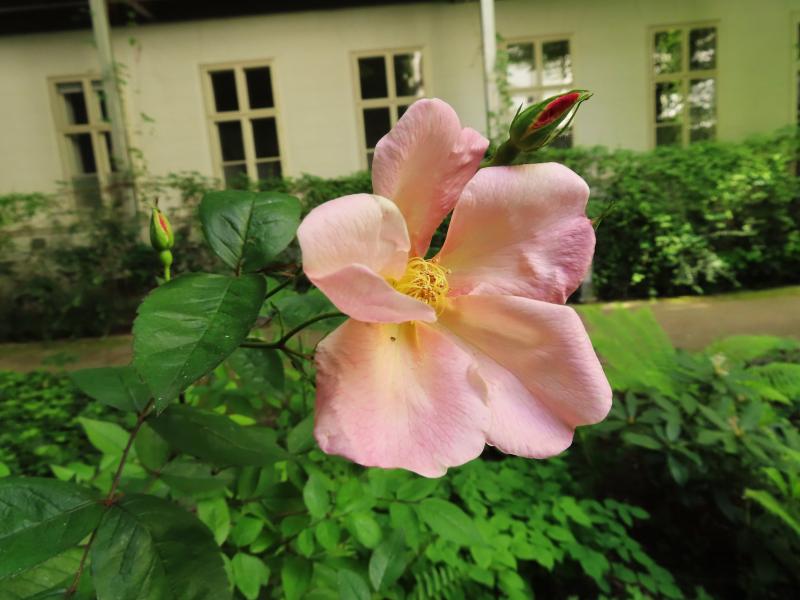 Im Waldviertel treiben vermutlich grade die ersten Blattknospen aus, vor Anfang Juni blüht da noch keine Rose... Aber: Im Wiener Hofgarten wird es für die Rosen immer enger, weil die Hainbuchen so stark gewachsen sind, umsomehr freut mich die erste Blüte von Mutabilis - sie verstömt, entgegen der Beschreibungen, einen wunderbar fruchtigen Duft :D Als Hoffnungsträger im Schattenland quasi als Experiment gepflanzt, ist sie ein locker- graziles Sträuchlein von 1,80m Höhe, das sich erst im oberen Bereich verzweigt, aber heuer sind da immerhin noch c. 12 Knospen :D