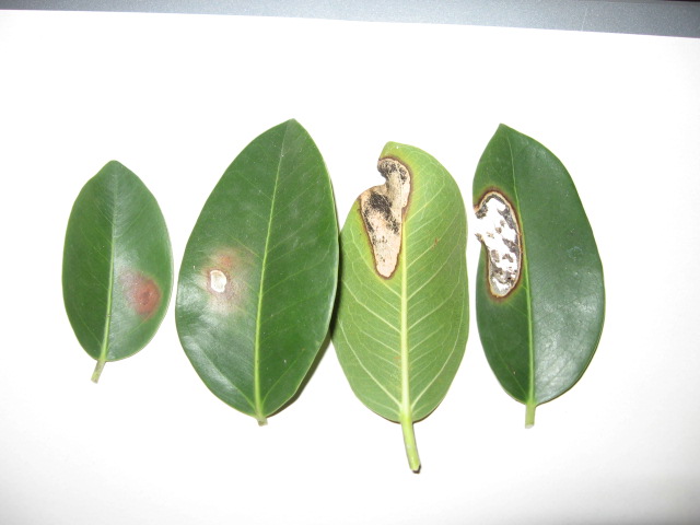 Hallo, an einer Kübelpflanze mit ficusähnlichen Blättern (soll eine australischer Ficus sein?!), entwickelte sich im Herbst an einzelnen Blättern ein komischer Belag/Pilz. Was ist das? Danke für Eure AntwortenZora