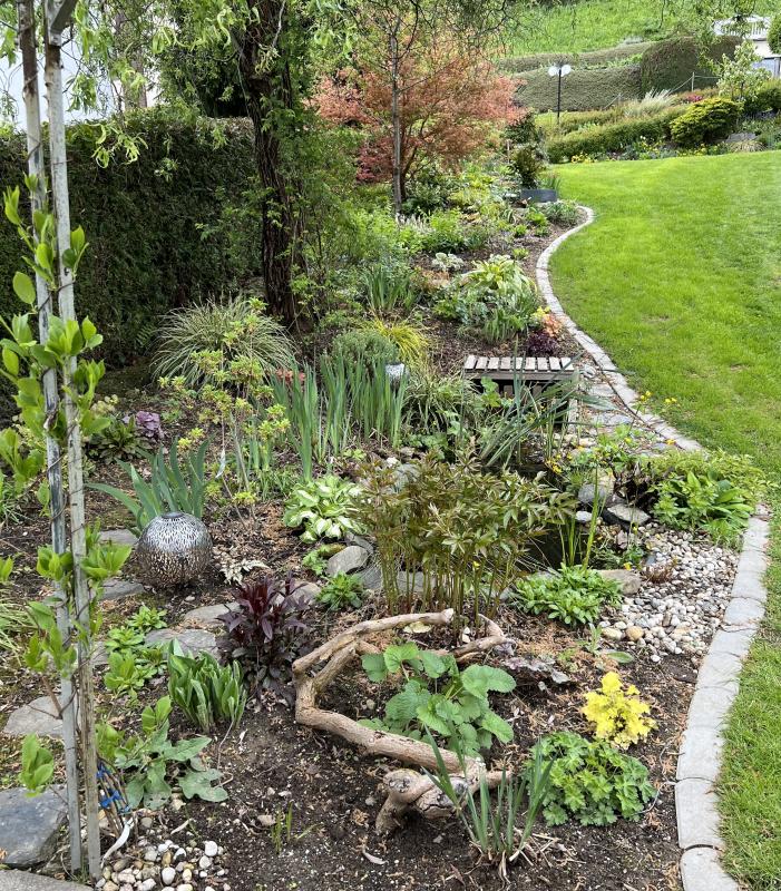Hier ist in manchen Beeten "Übergangszeit". Die Narzissen sind verblüht, die Alliümer noch nicht auf, die Rosen und Stauden lassen auch noch was auf sich warten. ;)