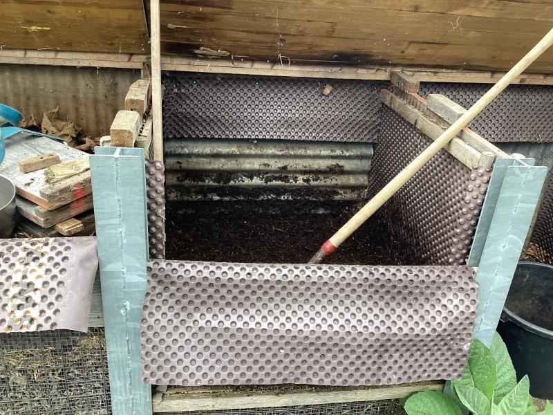 Mit der ersten grösseren Menge Grasschnitt kommt wieder Schwung in die Kompostiererei.