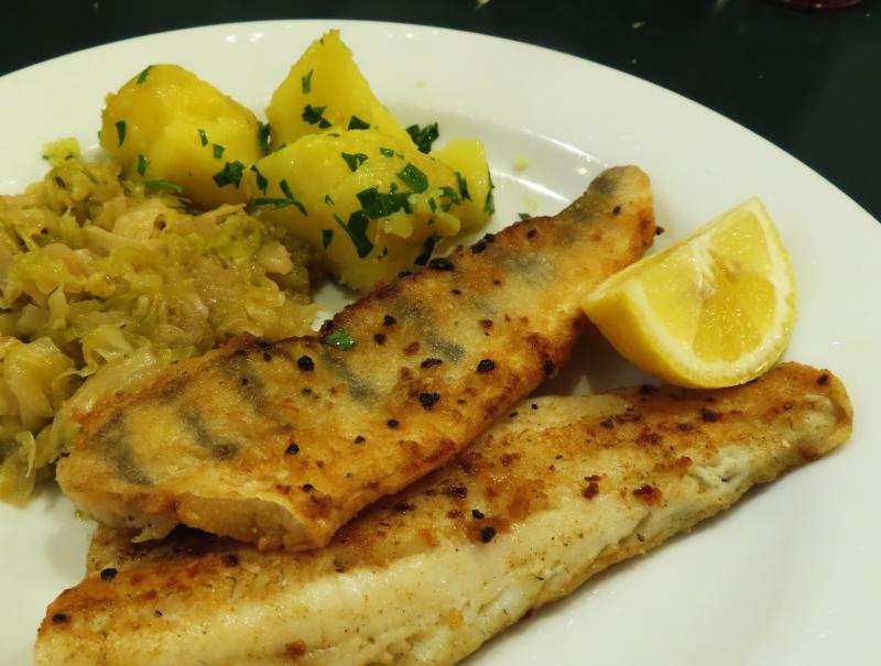 Das Frühkraut aus Nordmazedonien ist eingetroffen, grün und zart, deshalb gab es zum Zander gedünstetes Weinkraut (mit Welschriesling) :)