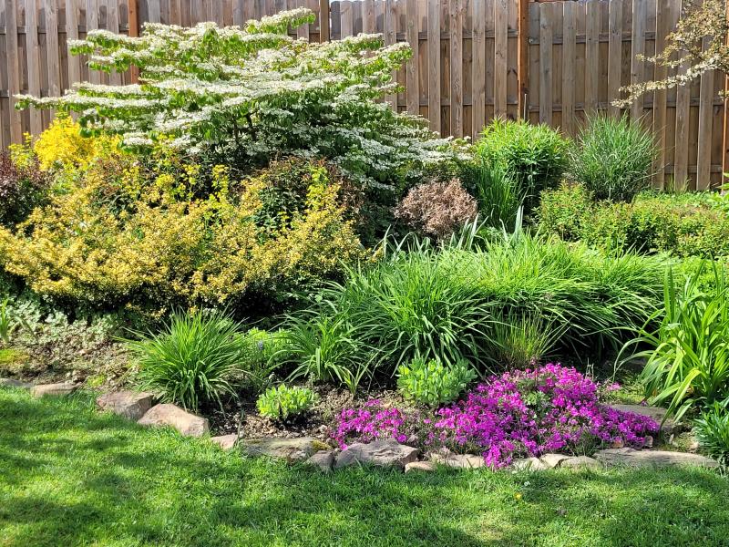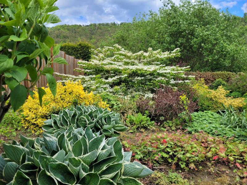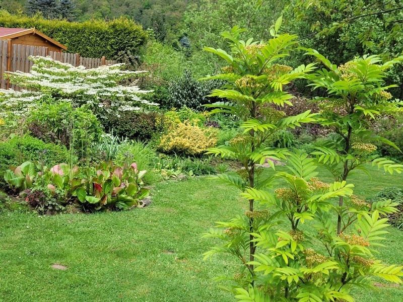 Abgesehen von den feurigen Azaleen ist Buddelkönigins Garten immer sehr edel und dezent, und die Stauden benehmen sich deutlich mehr als der Wildwuchs bei mir. Dazu noch der gerade frisch gemähte Rasen, der dem Garten quasi den "grünen Teppich" bereitet und so die schön angelegten Beete noch besser zur Geltung kommen lässt. Und der ausladende Viburnum plicatum ist ein Traum! :)