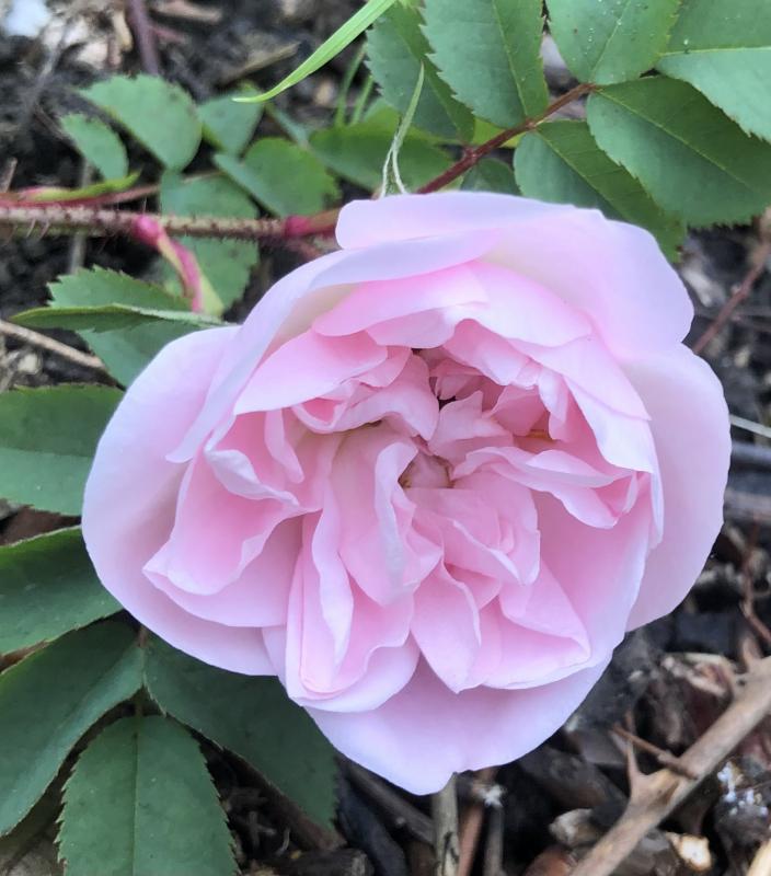 An der Terrasse begeistert mich immer wieder Fortune's Double Yellow, die Kamera kriegt leider die 2 Farben nicht so lebhaft aufs Bild. Nachdem ihr jetzt das Treppengeländer wegen dem gewachsenen Apfelbaum zu schattig ist, wächst sie lieber am Baum hoch. :-\