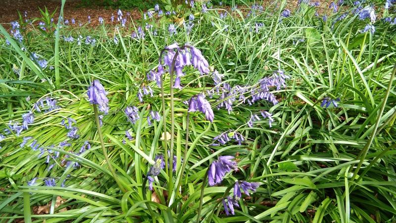 Hallo goworo, auf diesem Bild sind die hyacinthoides non-scripta (atlantische Hasenglöckchen) aus England die ich dir geschickt habe. Die Glöckchen nicken alle auf eine Seite und sind sehr dunkel. Die Laubblätter liegen oft sehr flach auf dem Boden.