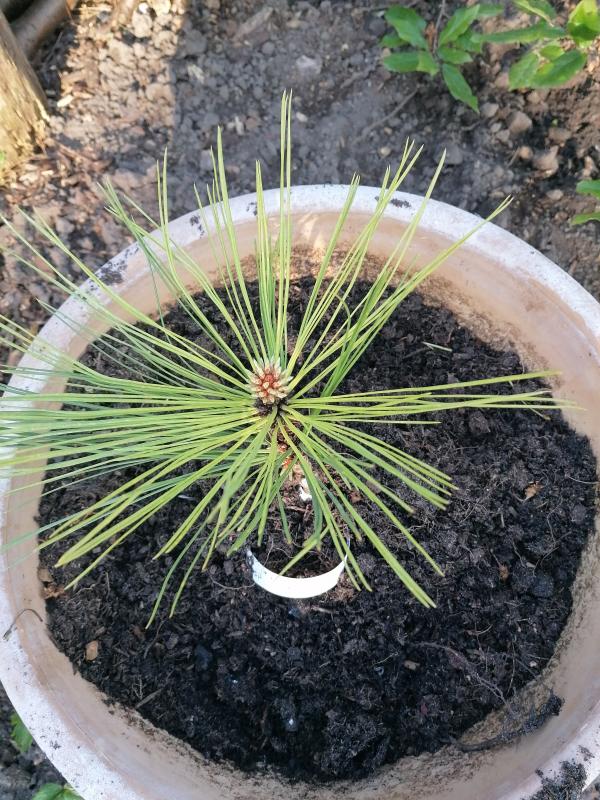 Ach, ich bedanke mich dafür, dass ich Gärtner Scholl hier kennengelernt habe! Gestern kam ein Paket mit Pinus jeffreyi Joppi und Abstichen eines kleinen Miscanthus. Alles prima und sehr gut in Stroh verpackt, welches ich zum Mulchen der Erdbeeren sowieso brauche. Sein Konzept finde ich klasse, zu günstigen Preisen auch mal Raritäten anbieten. Denn die Kiefer, ein Tipp von Bristlecone :), wird nicht so oft angeboten. Ob die gelbe Farbe der Nadeln normal ist oder sie Nährstoffe braucht, muss ich noch herausfinden..