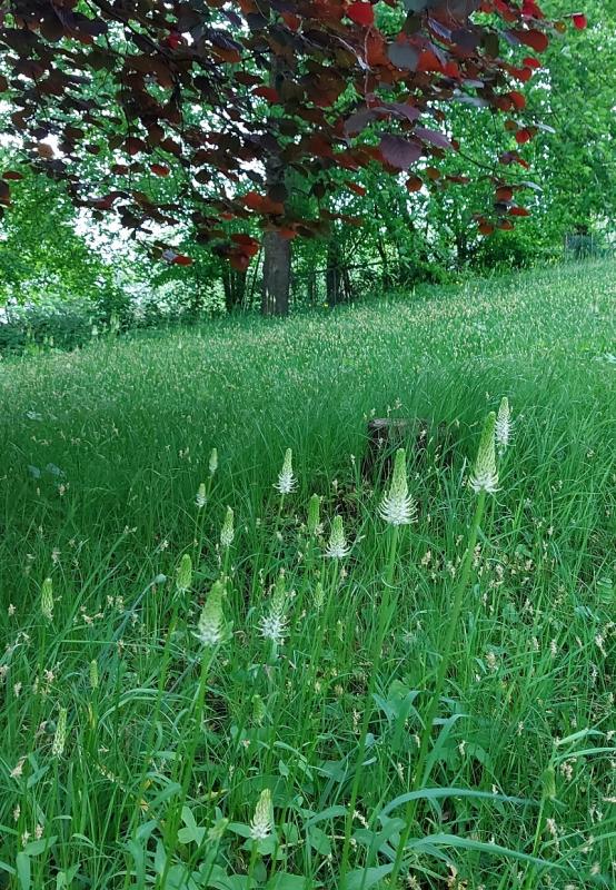 Ährige Teufelskrallen sind mein Margeritenersatz in der Wiese. Margeriten mögen hier nicht.