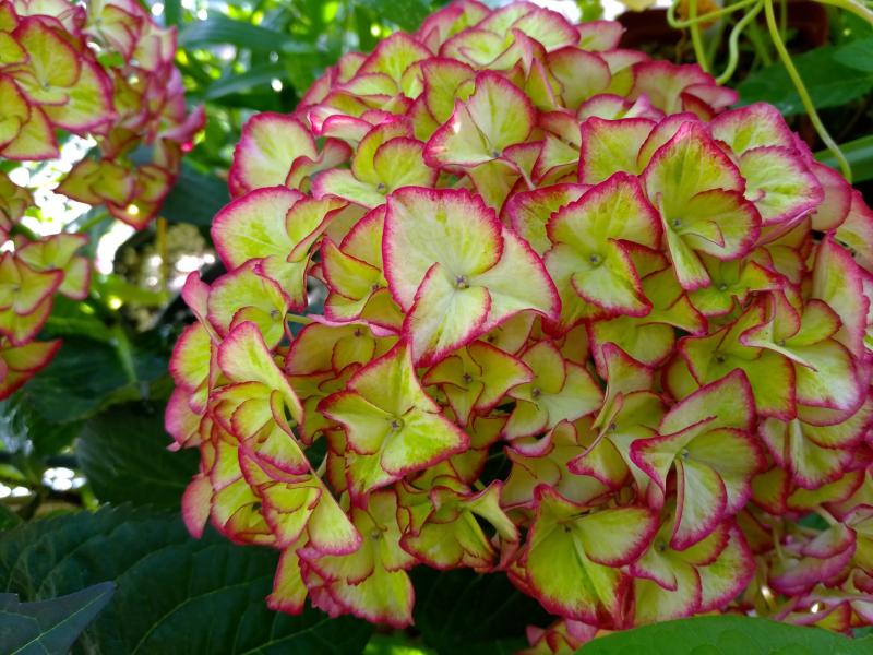 Kennt jemand die Sorte? Der Händler hatte auch Exemplare, bei denen die Blüten nicht mehr grün mit rotem Rand, sondern weiß mit rotem Rand waren. Leider ohne Sortenetikett, nur "Hortensie"