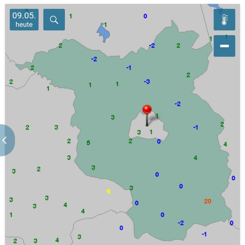 ringelnatz hat geschrieben: 8. Mai 2024, 21:37kommende Nacht wird es mit Sicherheit Bodenfrost, zumindest im Norden Brandenburgs geben.
