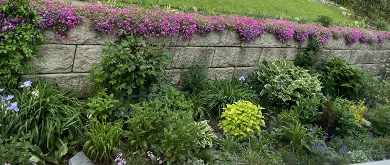 Die blühende Mauerkante ist klasse und dein Beet davor sieht super aus. Der Nachbar scheint nicht so das Interesse am Garten zu haben...