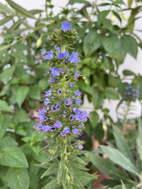 Natternkopf sät sich erfolgreich im mageren Teil des Gartens, auch im Pflaster, willig aus. Ich lasse ihn auch stehen wo er nicht stört
