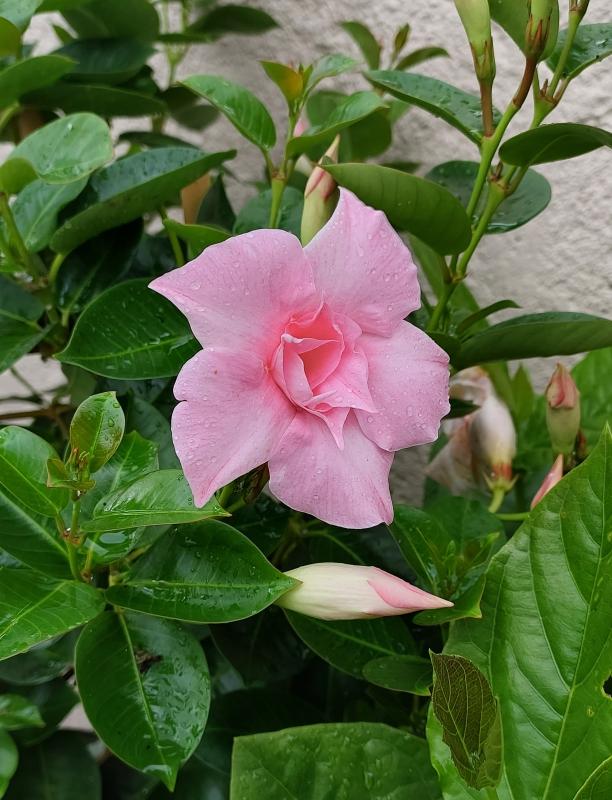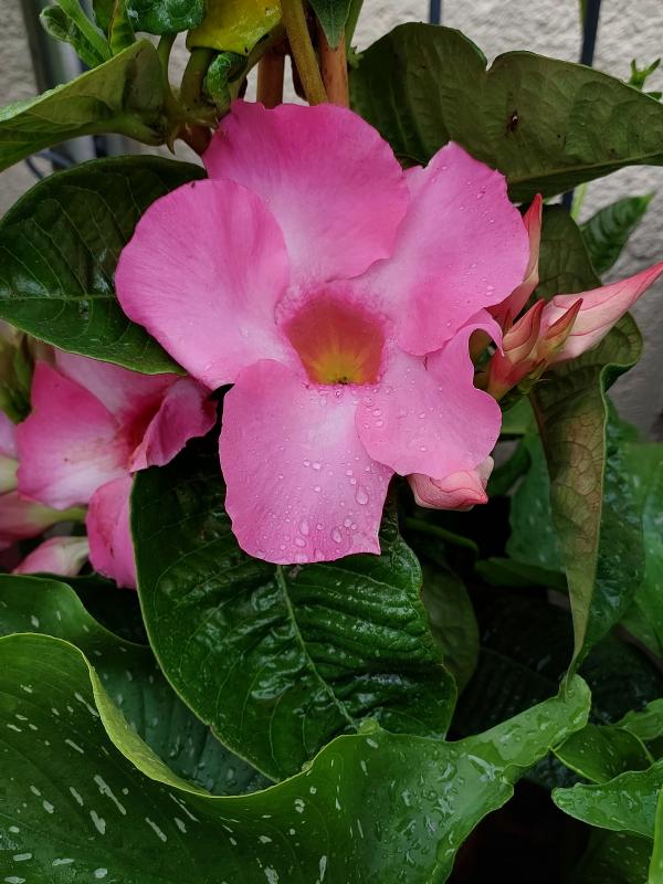 Mandevilla, die echte. Blütendurchmesser 12 cm und das wird noch mehr!