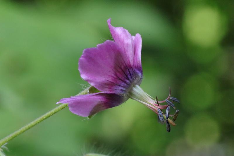 Einige Geranium phaeum mögen meinen schweren Boden nicht, er ist ihnen wohl oft zu nass. ´Samobor´ ist hier aber unverwüstlich, und dieser Sämling mit dunkelrosa Blüte ist nun auch schon jahrzehntelang im Garten.