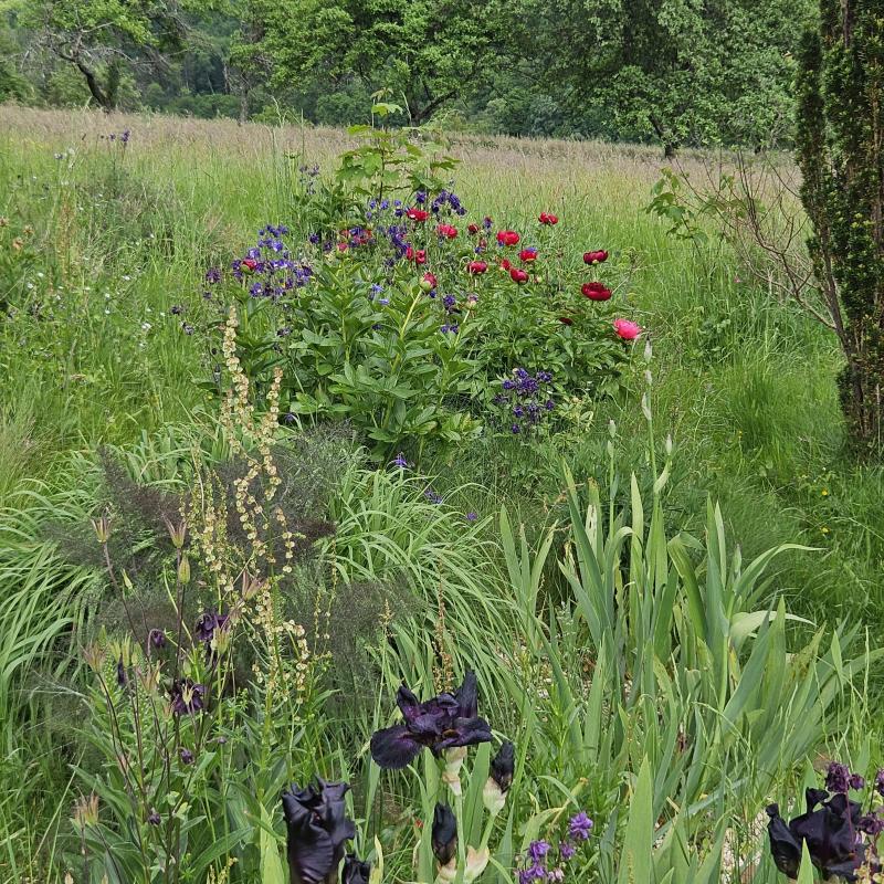 die blühen alle, also fast alle. Päonien sind außerordentlich robust und machen wenig Arbeit. Anders als Bart-Iris, die muss man vor Konkurrenz und Nässe schützen. Oder Wiesen-Iris, die muss man vor Wühlmäusen schützen. Aber Päonien und Bart-Iris brauchen Kalkböden.