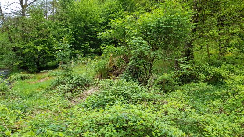 Das ist ein irgendwann umgekippter Baum, dessen Wurzelteller mit Brombeeren überwuchert ist. Da kann auch ich kein Grünland mehr draus machen