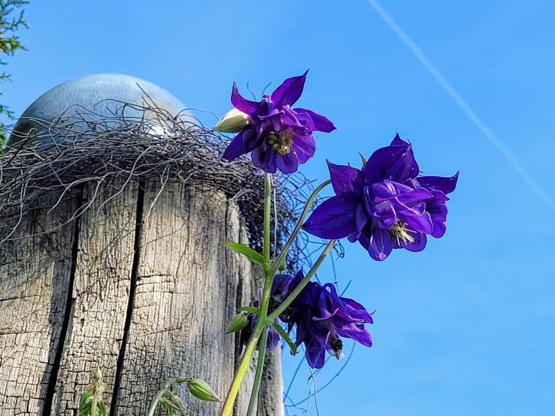 Hier im ganzen Beet mehrfach ein Schwarzweiß Effekt mit Geranium 'Derrick Cook' und Aquilegia 'Black Barlow '. Schwer zu fotografieren, aber in echt ganz ansprechend. :-*