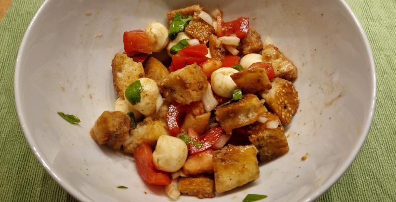 Hier gab es eine Farinata (mit grünen Oliven) und dazu Spargelsalat: Grüner Spargel, kleine Tomaten, Mozzarella und Basilikum. (- also martinas Spargelsalat aus dem Nachbarfaden). Allerleckerst. :D