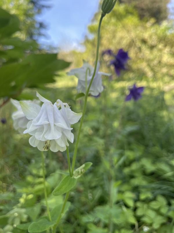 Hier im ganzen Beet mehrfach ein Schwarzweiß Effekt mit Geranium 'Derrick Cook' und Aquilegia 'Black Barlow '. Schwer zu fotografieren, aber in echt ganz ansprechend. :-*