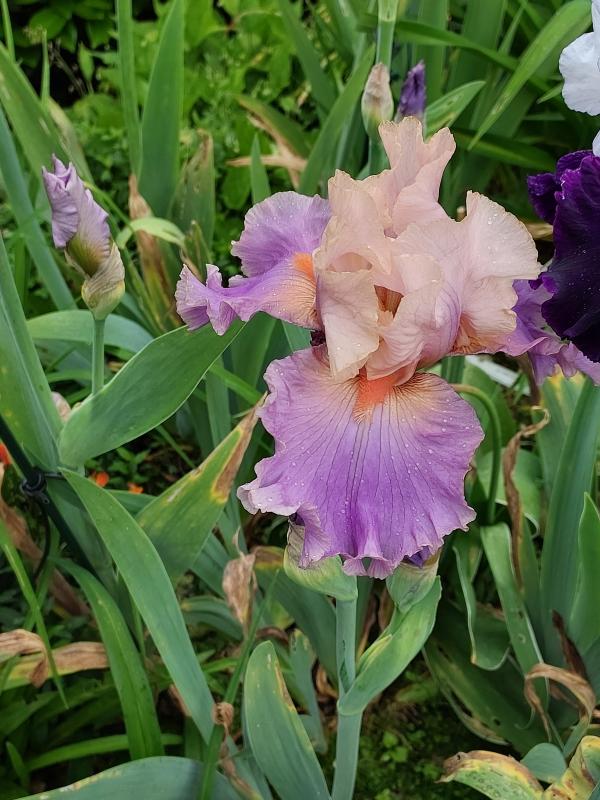 'Krimhilde' (Jan Stillhammer, R. 1993). TB, 28" (71 cm), Midseason bloom. Standards pink; falls blue, rimmed coffee brown; waved. 'Pink Angel' X unknown.