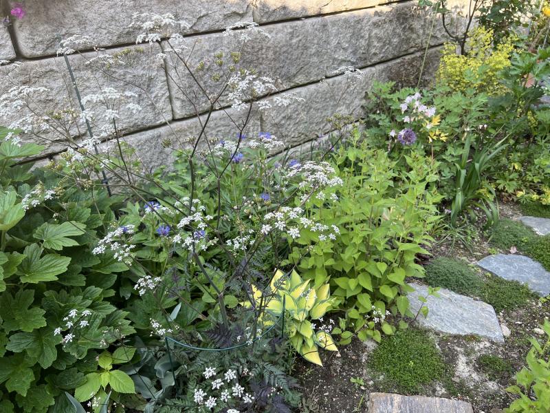 Anthriscus sylvestris ‚Ravenswing', ist sehr dankbar zum Aufhellen eines Beetes, versamt sich auch gut.