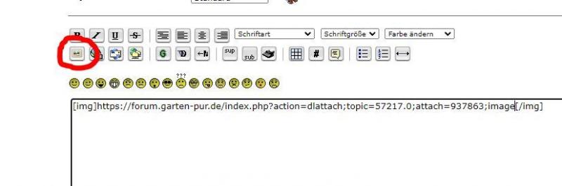 Genau. Und diese Url fügst Du jetzt zwischen die img-Klammern ein. Entweder schreibst Du [img ] und [/img ] (ohne Leerzeichen) oder Du nutzt da oben über dem Fröhlichsmiley den Knopf ("Bild einfügen" steht unter dem Mauszeiger). Das sieht dann aus, wie im angehängten Bild zu sehen.