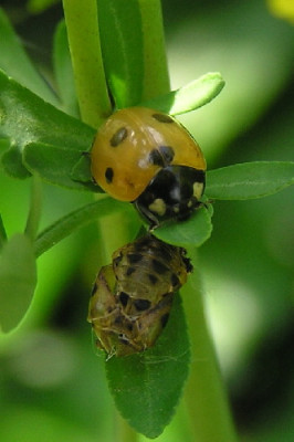..sehr schön :)was mich interessieren würde, kann man aufgrund der Larve schon feststellen, ob daraus mal ein 2-Punkt, 5-Punkt, 7-Punkt.....Marienkäfer wird ?
