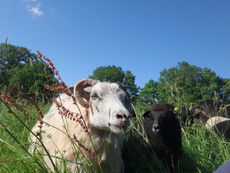 Danach schnell noch die Bäume auf den Kreuzwegwiesen gießen. Weiterfahrt Brinkplak. Dort erst Delta scheren. Was... für... ein... Unterschied! Madame hielt still, half mit... ohne blaue Flecken meinerseits entlassen. Sie sichtbar glücklich, dass die Wolle weg ist. Die Lämmer haben sofort angedockt. Danach mähen im Steilhang. Zwischendurch vom Donner gerührt zusehen wie Nachbars Rinder durchbrechen - dem Himmel sei Dank nur auf deren andere Fläche, aber ob sie da bleiben halte ich doch für relativ fragwürdig. Da sind sie ja schon letzte Woche irgendwo ausgestiegen. Danach Steilhang zäunen und abzäunen. Nochmal den Zaun akurat kontrollieren - weil die Lämmer noch Fuchsgröße haben.
