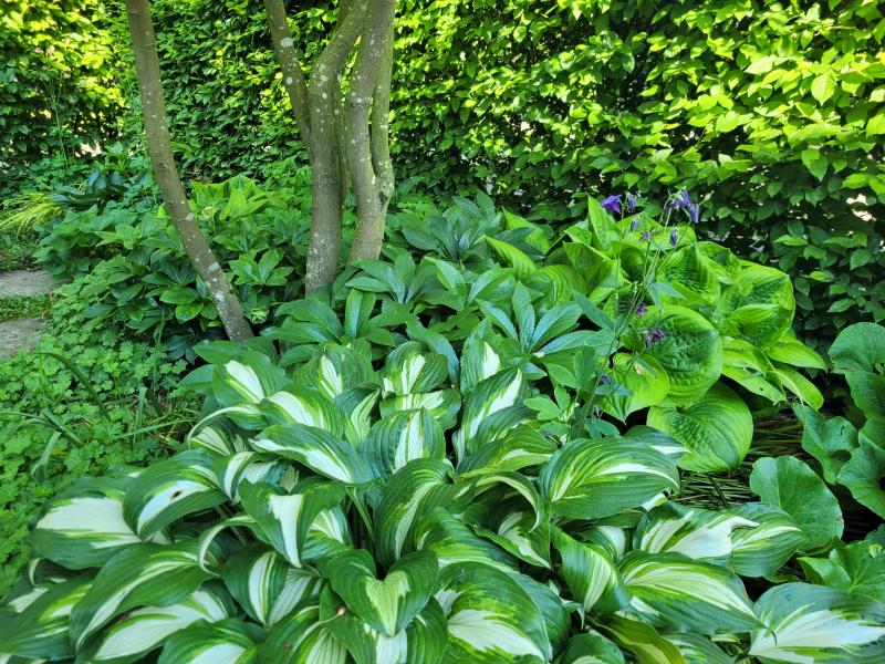 So habe ich sehr frühzeitig Ende Februar mit dem Streuen von Ferramol begonnen... dann hat man einem guten Teil des dann erwachenden, hungrigen Nachwuchses schon erwischt. :-[ Ohne geht es leider nicht, wenn man Hosta haben möchte. Der Spätfrost war dann nochmal ein ganz anderes Thema... aber hier in diesem Beet - geschützt durch die Buchenhecke ? - nicht das Problem. :P