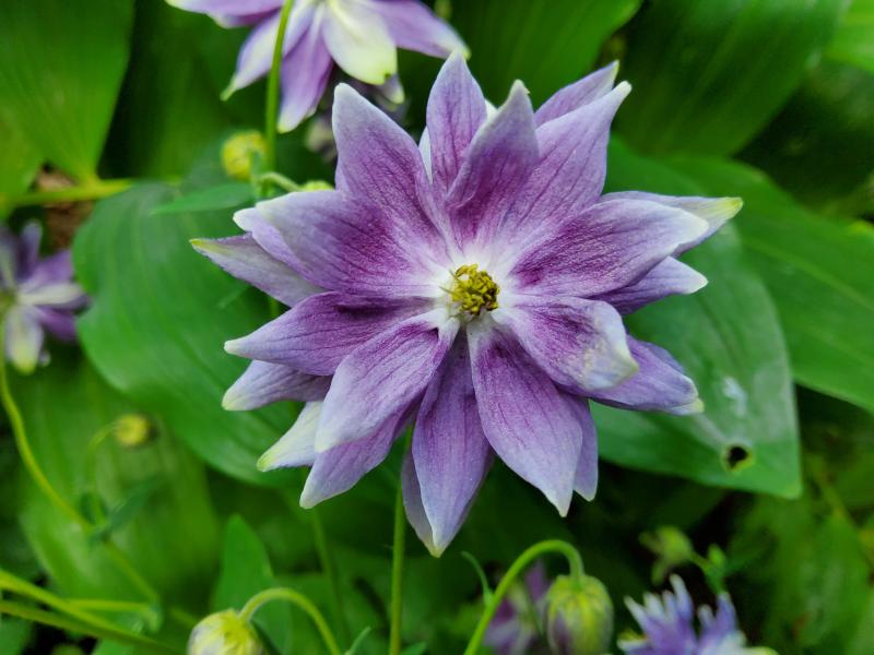 an einer Pflanze unterschiedliche Blütenformen, einmal Richtung stellata, aber mit Spornen