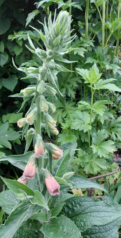 Und schon wieder kam eine Digitalis angeflogen, die ich nicht gesät habe Könnte das eine Ferruginea sein? Die stand vor Jahren mal vorne.