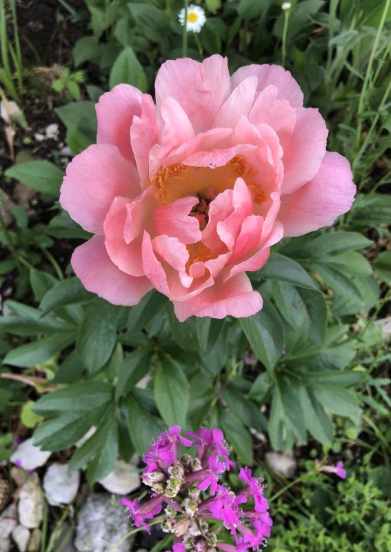 Sie steht bei mir im Halbschatten. So pink ist sie nicht, sie hat ein bisschen von Pfirsichfarbe. Und leuchtet weit.