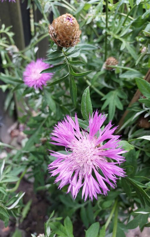 Ganz früh schon blüht bei mir Centaurea dealbata. Aus der Schweiz mitgenommen. Ist so riesig geworden, musste ich umziehen. Zu warm hier? Da fehlen mind. 1000 Höhenmeter. .