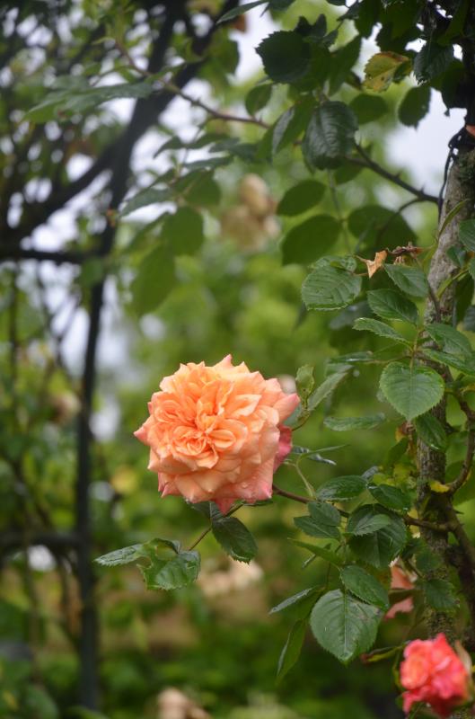 Hier blüht jetzt Rosa centifolia 'Fantin Latour', sie hat mittlerweile Ambitionen zu klettern. Besonders schön neben dem Duft ist, daß sie fast stachellos ist.