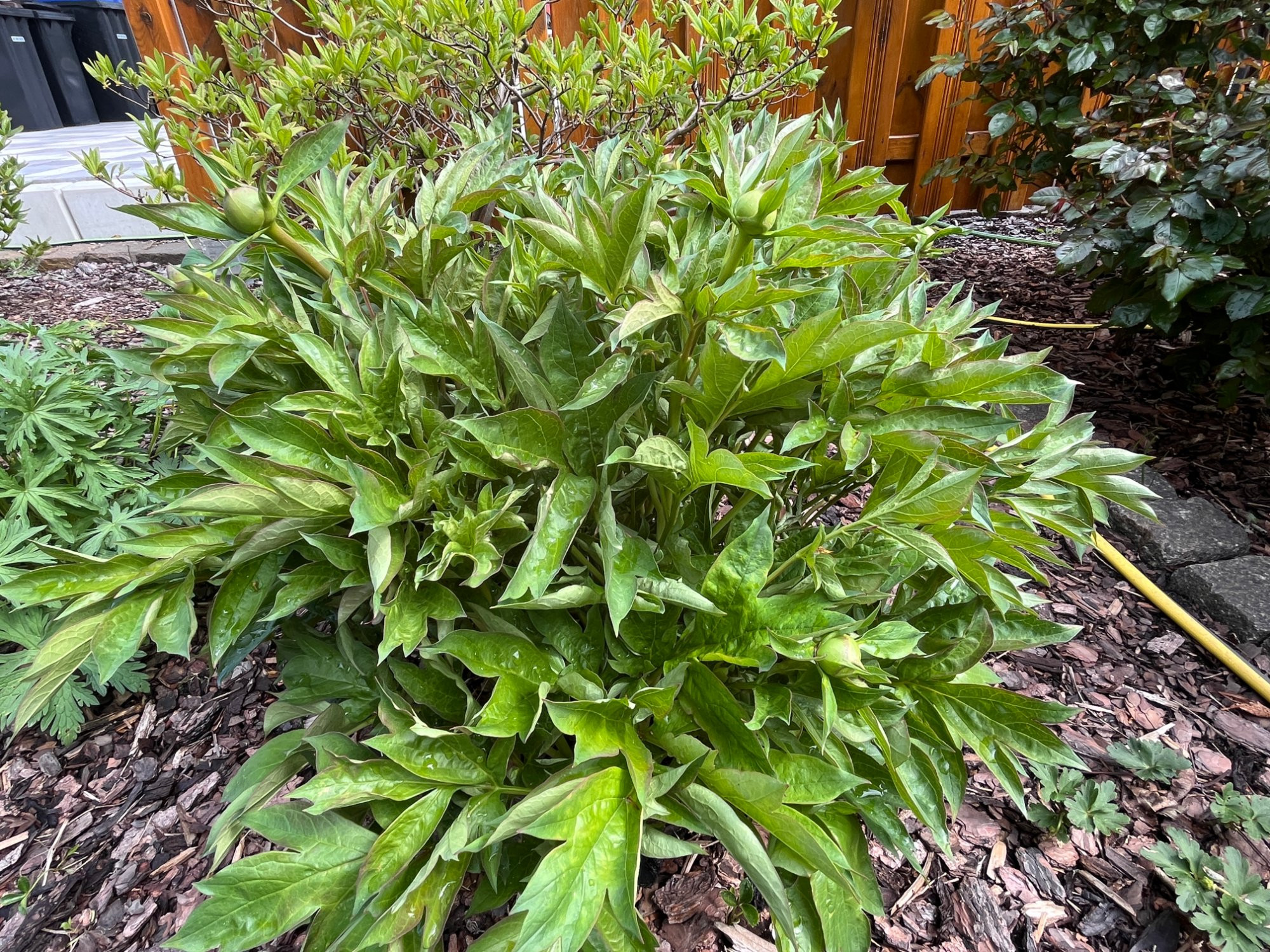 Ich habe letztes Herbst eine Itoh eingepflanzt, war richtig große Wurzelstock. Es ist schön gewachsen. Ich habe auch paar Knospen entdeckt, aber die bleiben immer noch klein und wachsen nicht weiter.