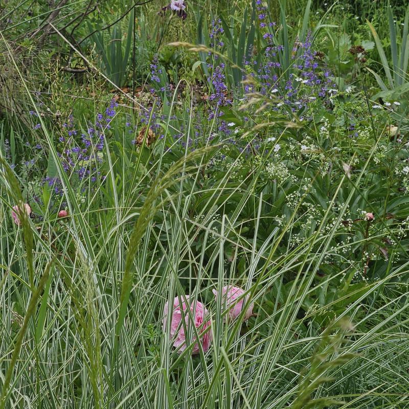 Galium mollugo, Miscanthus 'Morning Light' Päonien