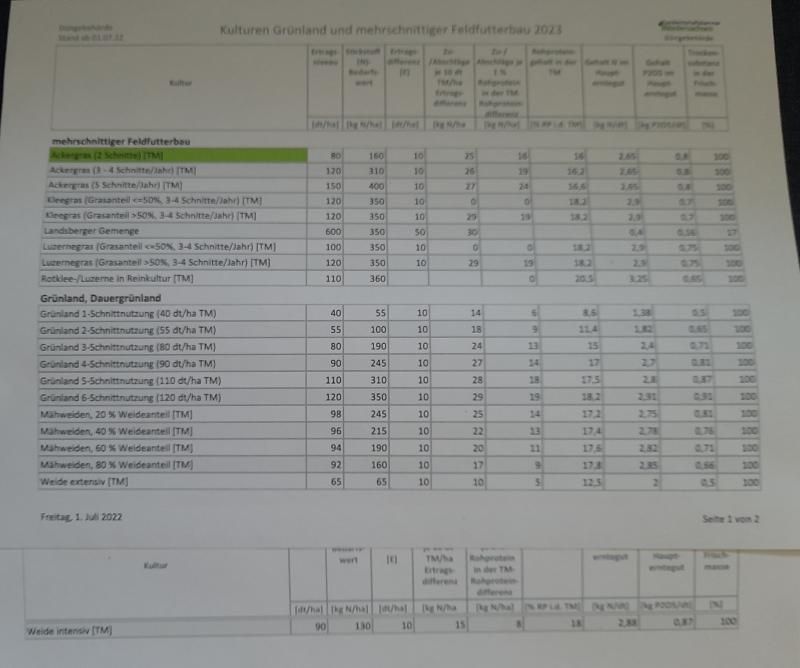Hier der Grünlandirrsinn. Was fällt sofort auf: Jeder Mist wird unterschieden. Dass eine Weide je nach Bodenpunkten ein völlig anderes Ergebnis liefert. Dass je nach Weidedauer ein anderes Ergebnis... WTF! Das ist nun mal nicht standardisierbar. Das ist einfach nur lächerlich@