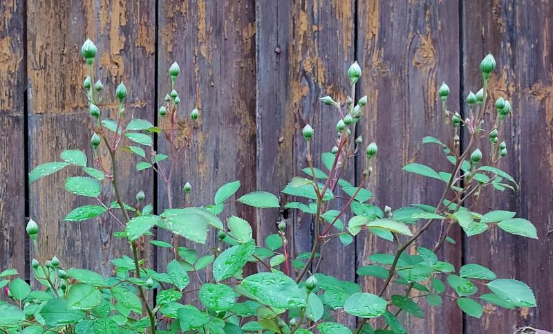 Marbrée Violette ist hier zumindest auch schon knospig, Ypsilante muss ich erst mal suchen gehen. :-\