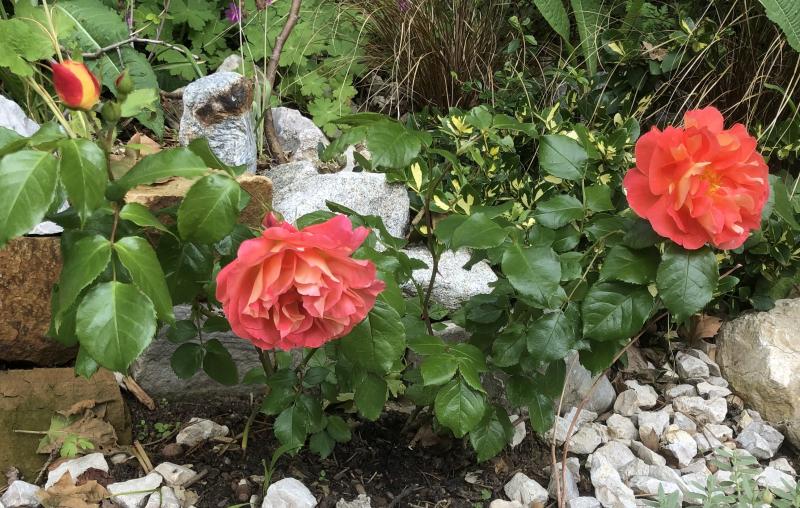 Indigo remontiert hier sehr zuverlässig, bei Ferdi sieht das unterschiedlich aus. SdDJ braucht für eine gute Nachblüte Sonne, dafür verbrennt sie dort leicht. Große Strauchrosen wie Ghislaine remontieren fast überall nur spärlich, wenn sie nicht ausgeputzt und gedüngt werden. In sehr fettem Boden kann das anders sein.