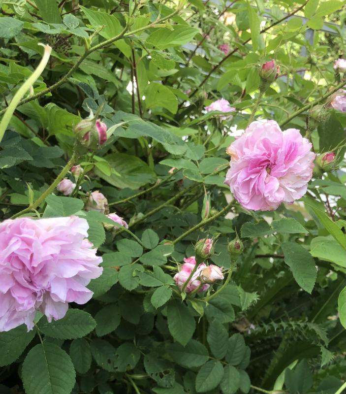 Indigo remontiert hier sehr zuverlässig, bei Ferdi sieht das unterschiedlich aus. SdDJ braucht für eine gute Nachblüte Sonne, dafür verbrennt sie dort leicht. Große Strauchrosen wie Ghislaine remontieren fast überall nur spärlich, wenn sie nicht ausgeputzt und gedüngt werden. In sehr fettem Boden kann das anders sein.