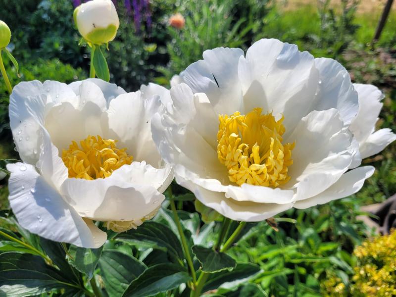 Wie schön, eure ungefüllten Pfingstrosen. Hier standen schon einige im Garten, als wir das Haus 2016 kauften. Leider sind sie überwiegend gefüllt... also schwere Blütenköpfe an hohen Stängeln, die unbedingt gestützt werden müssen... An einer Stelle gibt es allerdings eine wunderbar harmonisch Geformte, mit ungefüllten, weißen Blüten, die dieses Jahr auch recht üppig blüht. Nach meiner Recherche könnte es Jan van Leeuwen sein.