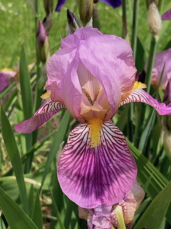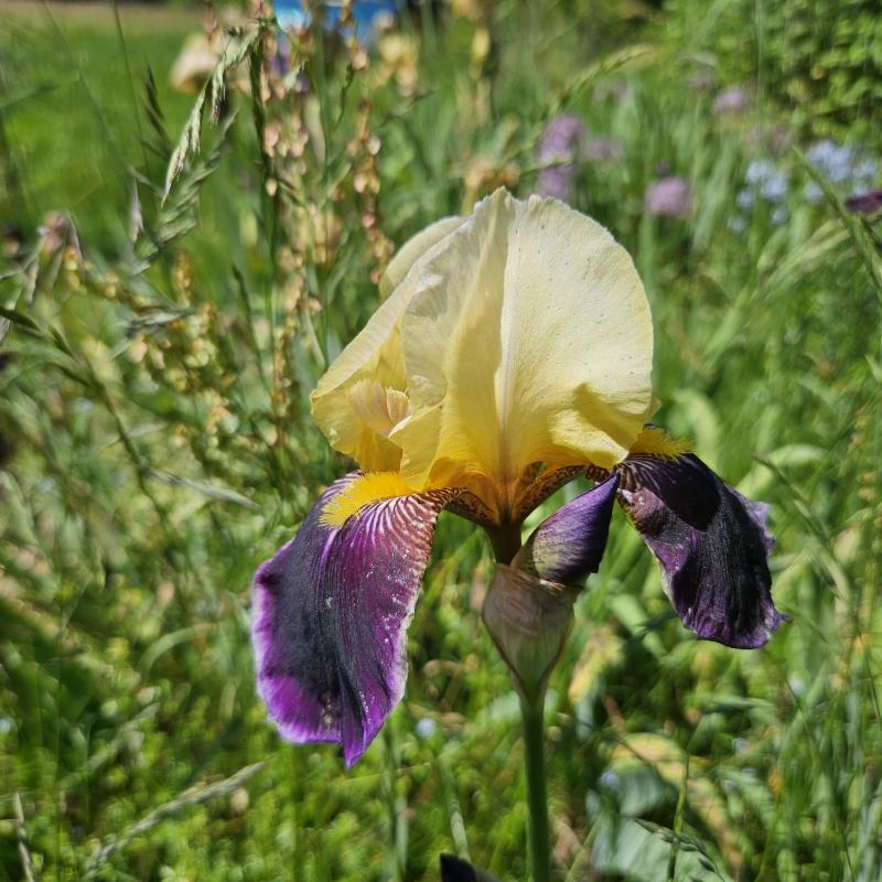 Zwischen den grossenTBs taucht diese bescheidene Iris auf. Vielleicht eine der alten, in 2021 ertrunkenen. Sie gefällt mir. Kennt jemand sie?