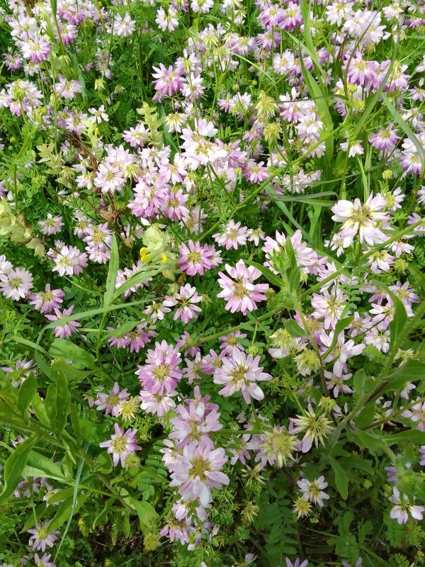 Nach einigen Tagen Regen hat sich die Wiese ganz schön regeneriert und es blühen viele Götterblumen, Läusekräuter,Klappertöpfe u.a.