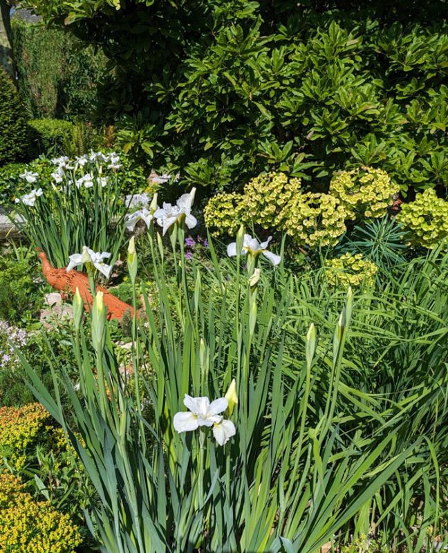 Hier blüht White Swirl im Kiesbeet am Teich.