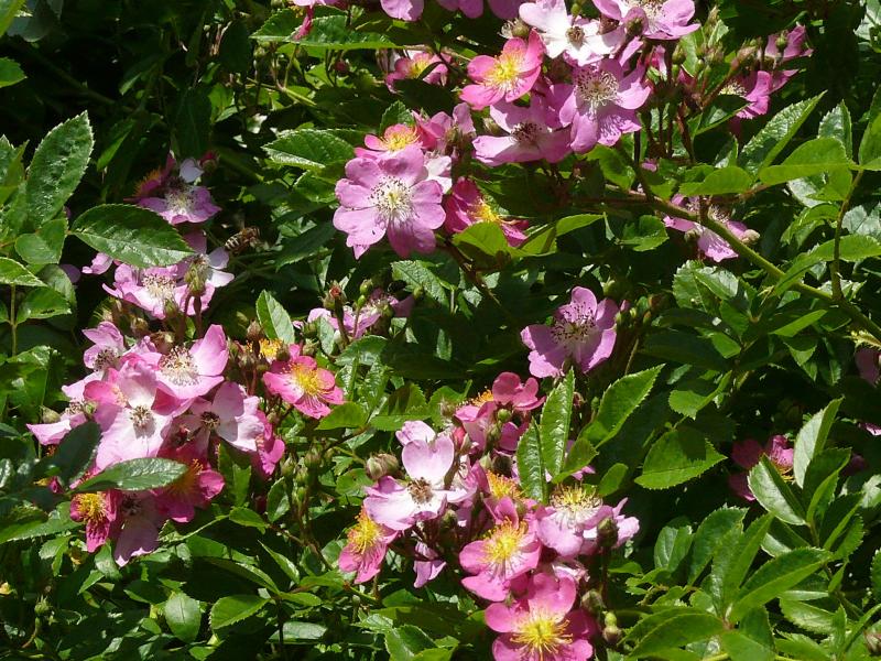 Indigo remontiert hier sehr zuverlässig, bei Ferdi sieht das unterschiedlich aus. SdDJ braucht für eine gute Nachblüte Sonne, dafür verbrennt sie dort leicht. Große Strauchrosen wie Ghislaine remontieren fast überall nur spärlich, wenn sie nicht ausgeputzt und gedüngt werden. In sehr fettem Boden kann das anders sein.