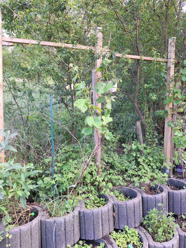 Ich glaube sie haben aus den Betongringen eine Mauer gebaut, um den Abhang zu sichern. Habe ich auch so ähnlich. Die Reben können nach hinten durchwurzeln. Ist aber in den Dürrejahren im Nachteil, wenn man sie da pflanzt und sie nicht durchwurzeln konnten. Da muss man viel gießen. Erübrigt sich aber heuer eher.