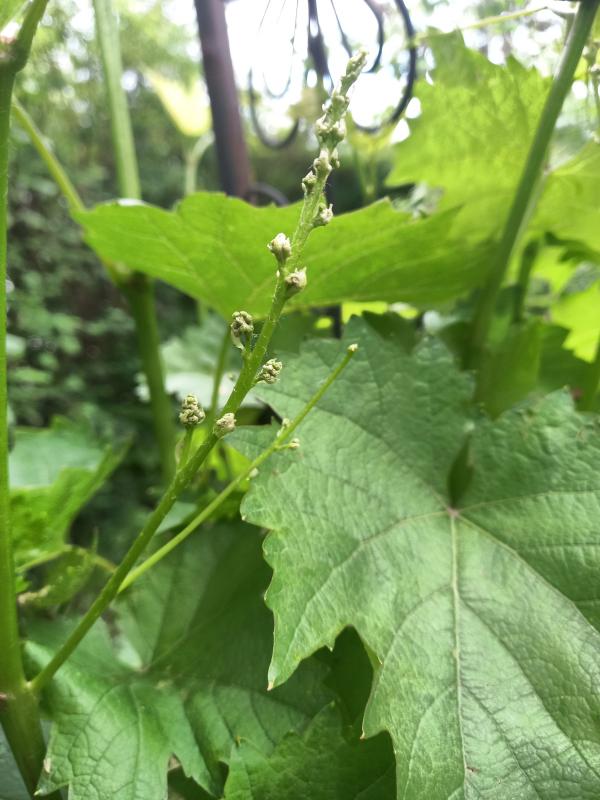 Eine selbstgezogener Klon von Muscat Bleu will dieses Jahr zum ersten mal blühen. Aber irgendwie auch nicht. Alle ca. 10 Gescheine sehen so aus. ;D