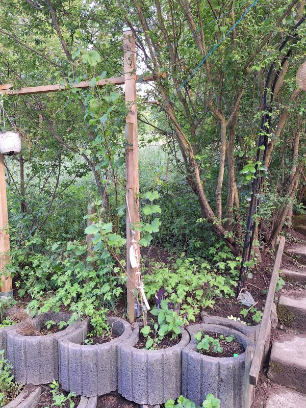 Ich glaube sie haben aus den Betongringen eine Mauer gebaut, um den Abhang zu sichern. Habe ich auch so ähnlich. Die Reben können nach hinten durchwurzeln. Ist aber in den Dürrejahren im Nachteil, wenn man sie da pflanzt und sie nicht durchwurzeln konnten. Da muss man viel gießen. Erübrigt sich aber heuer eher.