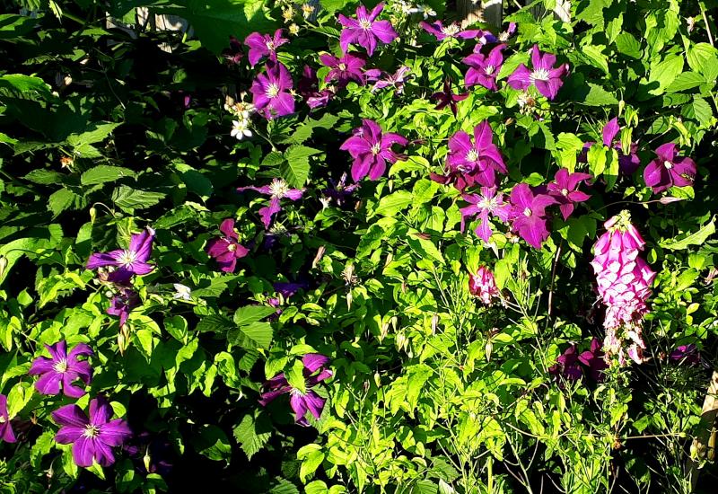 Es könnte aber auch Polish Spirit sein, sie blüht jedoch etwas später. Das Foto ist vom letzten Jahr, sie steht nicht mehr dort. Die Terrassenüberdachung ist neu gemacht worden, die Clematis ist nun ganz woanders umgepflanzt, hoffentlich nicht zu schattig ??? Jedenfalls ist sie wieder gut gewachsen und hat kleine Knospen