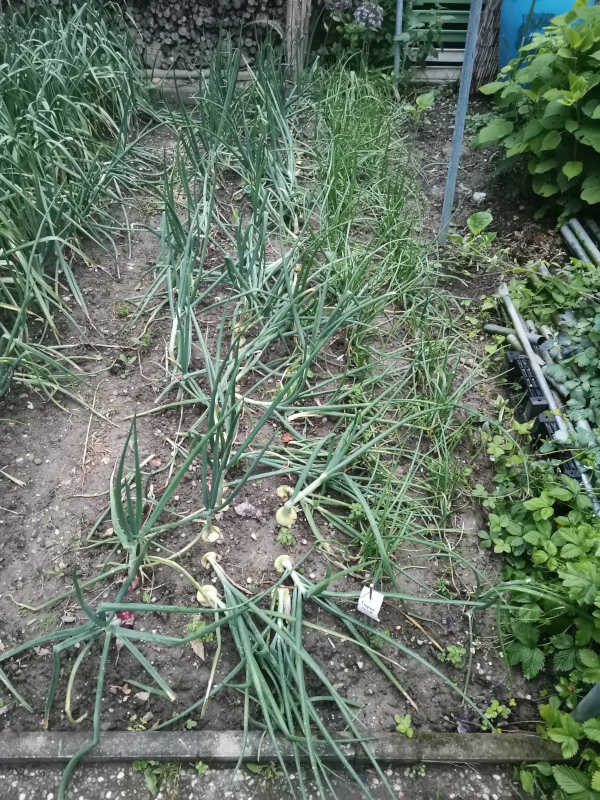 Mit allem, aber nicht Erdbeeren. Auch die Zwiebeln sind umgekippt. Da ist nix mehr mit Reihe.